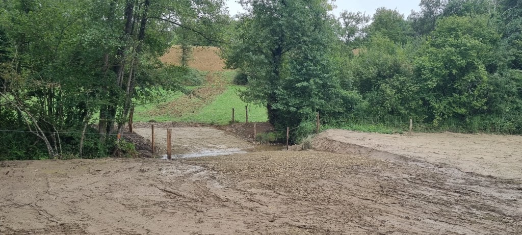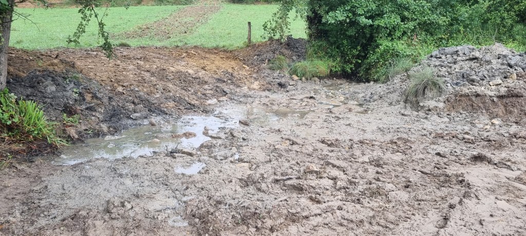 - Talutage des berges environnantes et terrassement du passage à gué/point d’abreuvement