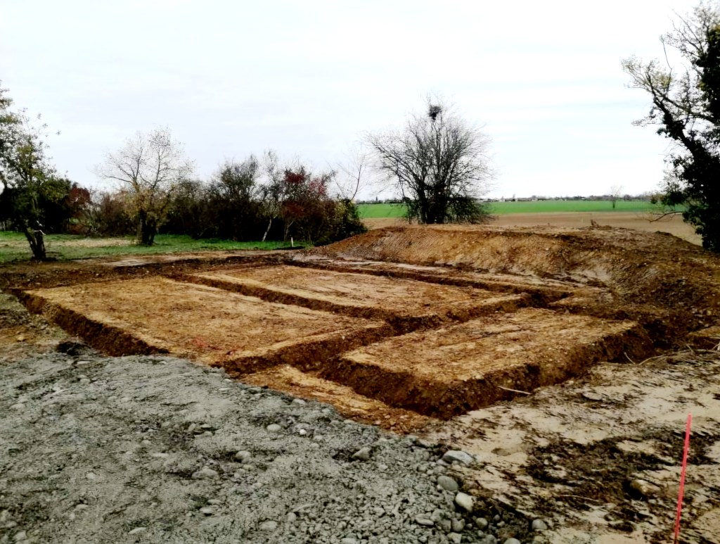 - implantation des tranchées de fondations avec refend si besoin, fond de fouille déterminée par l’étude de sol faite au préalable pour qu’il n’y ai aucune surprise dans le temps… chemin d’accès en suivant